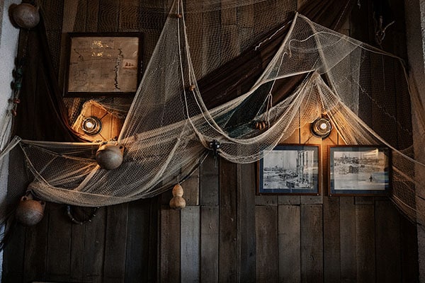 En Casa Pescadores se come, pero también es un espacio muy bello, con una ubicación y un interiorismo singular. La decoración y la diferenciación de espacios reflejan el espíritu único del grupo Mercabanyal, siempre preocupado por preservar el verdadero carácter de los inmuebles del barrio, combinando en esta ocasión el encanto marino con la estética industrial. Esto no es casual: el bar y la parrilla se ubican en lo que antes era una carpintería naval, un espacio donde se trabajaban barcos de recreo y barcas de pesca.
