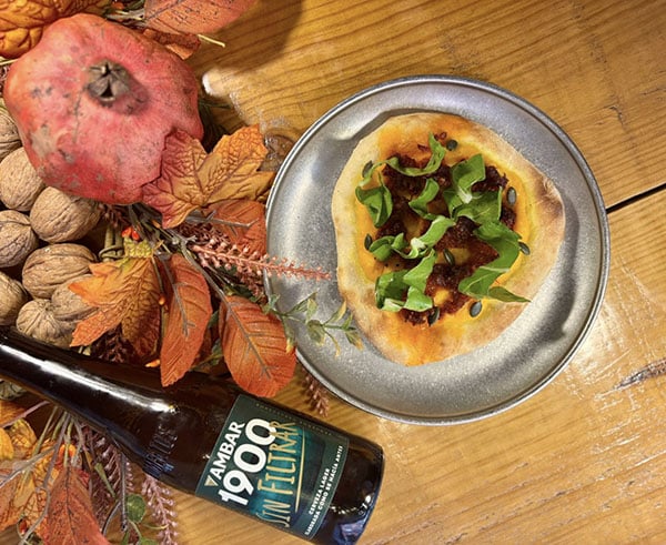 Para esas cocas llenas de sabor y fuerza en el paladar, Ambar Morena o Ambar Export se convertirán en sus aliadas. La primera, una cerveza lager 100 % malta suavemente horneada durante 24 horas, pensada para el consumo diario y con un aroma a frutos secos, fondo especiado y ligero amargor. La segunda, Ambar Export, para acompañar con calma los sabores más intensos de cocas con quesos o embutidos, sensaciones intensas gracias a sus tres maltas, doble período de fermentación y lenta maduración en bodega. Los más atrevidos experimentarán con los sabores y los contrastes de cocas especiadas, también elaboradas con verduras o frutas, incluso dulces, para ello se proponen dos cervezas: Ambar IPA extra amarga o la cerveza de la colección Ambiciosas, Ambar Montañesa, elaborada con mieles de tomillo y encina, lúpulo y plantas aromáticas recién molidas. Fermentada con bacterias lácticas y salvajes (lactococus lactis) y nuestra levadura lager.