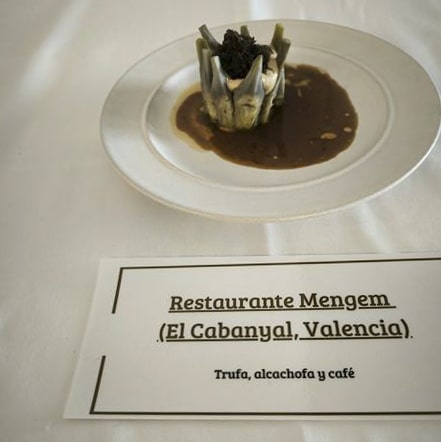 La propuesta de Mengem, ha destacado por la combinación de trufa fresca fermentada e infusionada, junto a la reina de la huerta, la alcachofa, que Sandra y Elias cultivan en su propio huerto en Meliana y que han acompañado con una magnífica demigláce de café.