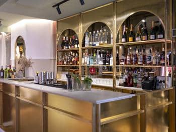 Por último, encontramos la barra, realizada en madera natural y enmarcada por arcos con retroiluminación cálida. Funciona como antesala al comedor, pero también es un espacio para un aperitivo informal, integrando perfectamente lo funcional con lo estético. Y es que, con esta renovación, Puerta del Mar no sólo se reafirma como un emblemático punto para disfrutar de la gastronomía mediterránea en el centro de la ciudad, sino también como un espacio donde cada detalle, desde la iluminación hasta el mobiliario, ha sido pensado para elevar la experiencia del comensal y conectar con el Mediterráneo.