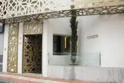 El edificio que acoge el Restaurante Coque con una Estrella MICHELIN , era originariamente la casa familiar de Rafael, Juan Diego y Mario Sandoval. Su abuelo Álvaro Huertas en el año 1949 comienza la tradición familiar, con una casa de comidas, llamada “Bar Las Olas Coque” pegada al edificio actual, donde la planta baja era el comedor para los clientes y en la planta de arriba, era la vivienda familiar. Teresa Huertas, la madre de los hermanos Sandoval con solo 13 años, se pone al frente de la barra, mientras la abuela cocinaba, y con los escasos ingredientes de la época, apoyada por su huerta y su ganado propio, hicieron famoso el negocio. Muchos de los guisos y los asados provienen de las recetas de la abuela, que conservan con mucho cariño. Cuando se casaron sus padres, se hicieron cargo del negocio y en el año 1976 su padre construyo este edificio, que para ese momento, parecía un palacio de 5 plantas, cuando en el pueblo solo había casas bajas. A día de hoy, todavía no se ha quedado pequeño y les ha servido para montar este sueño.
